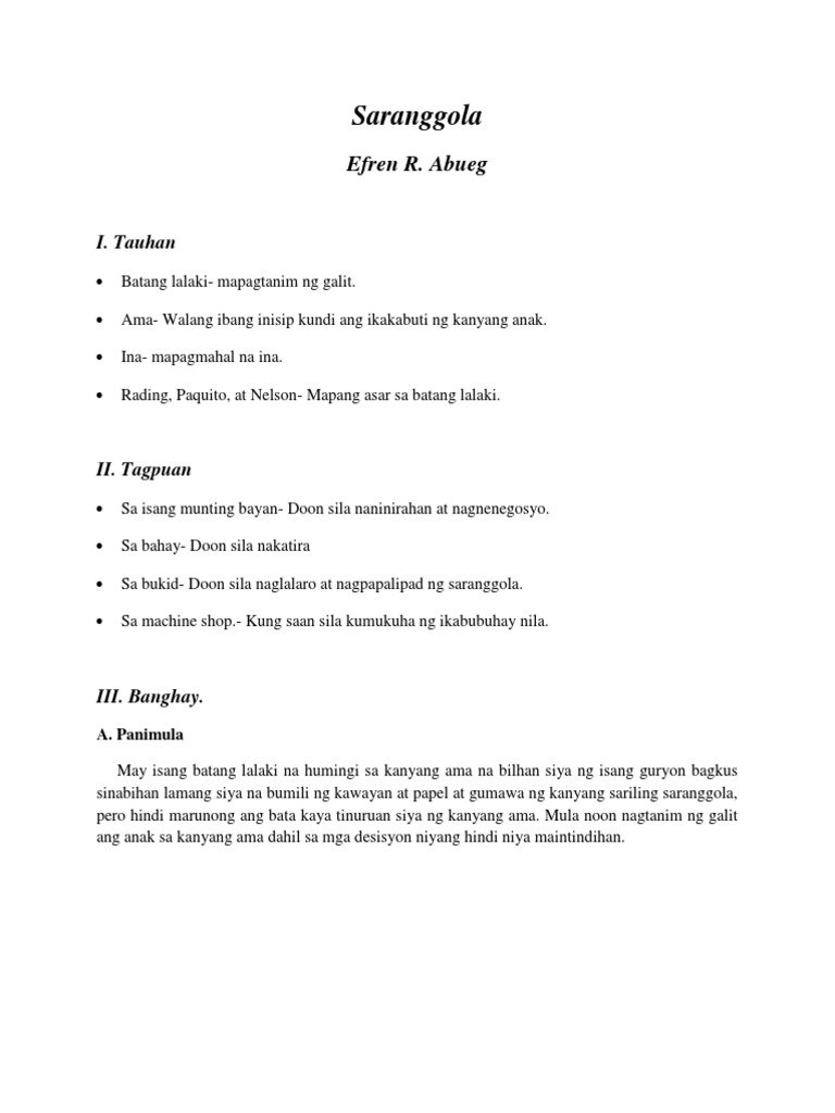 Maikling kwento- Saranggola ni Efren Abueg Wika. TAUHAN SA ANG SARANGGOLA ANAK INA AMA ASAWA. Rading Paquito Nelson pakinggan ninyo ang kwentong ito.