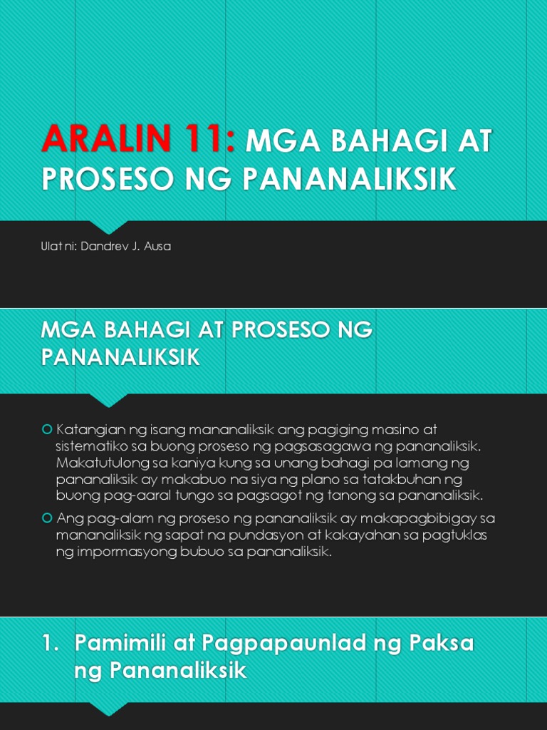 Aralin 11 Mga Bahagi At Proses Ng Pananaliksik Pdf