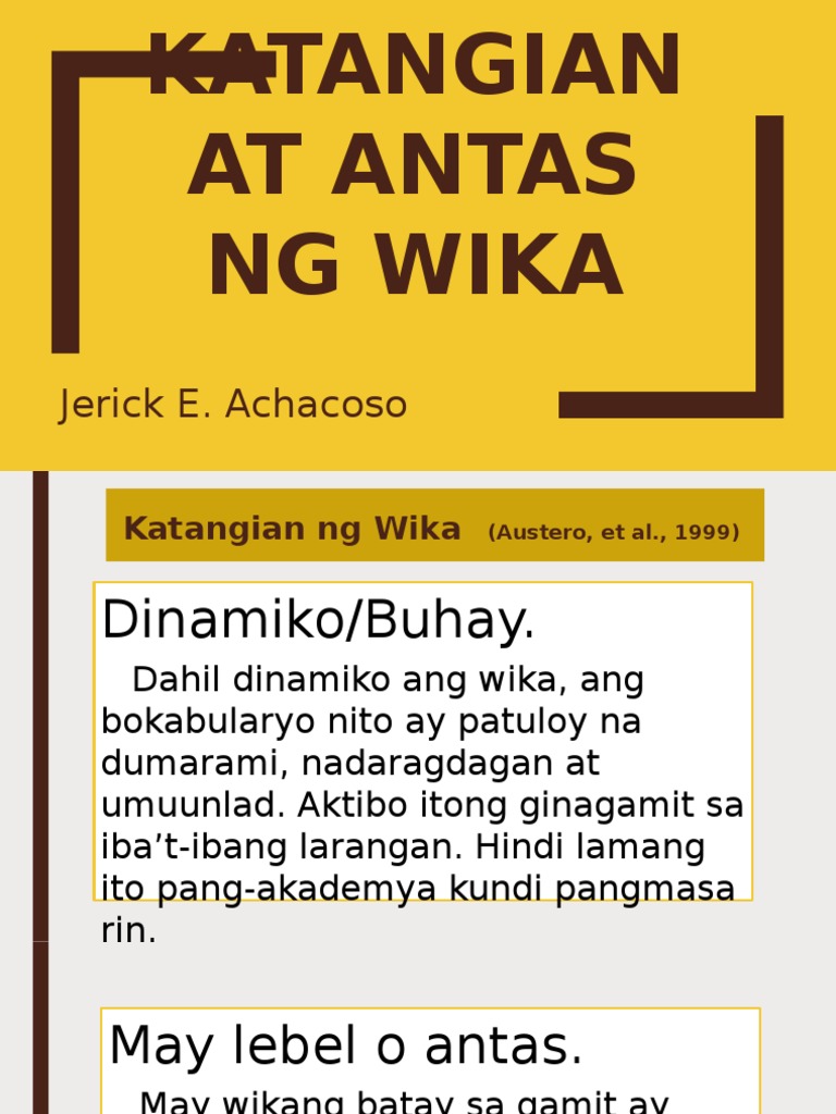 Bilang instrumento sa mabisang pagpapahayag kailangang taglayin ng wika ang sumusunod na mga katangian. Kahulugan at Katangian ng Wika by Salvador I Fontanilla. How to get repeat customers.