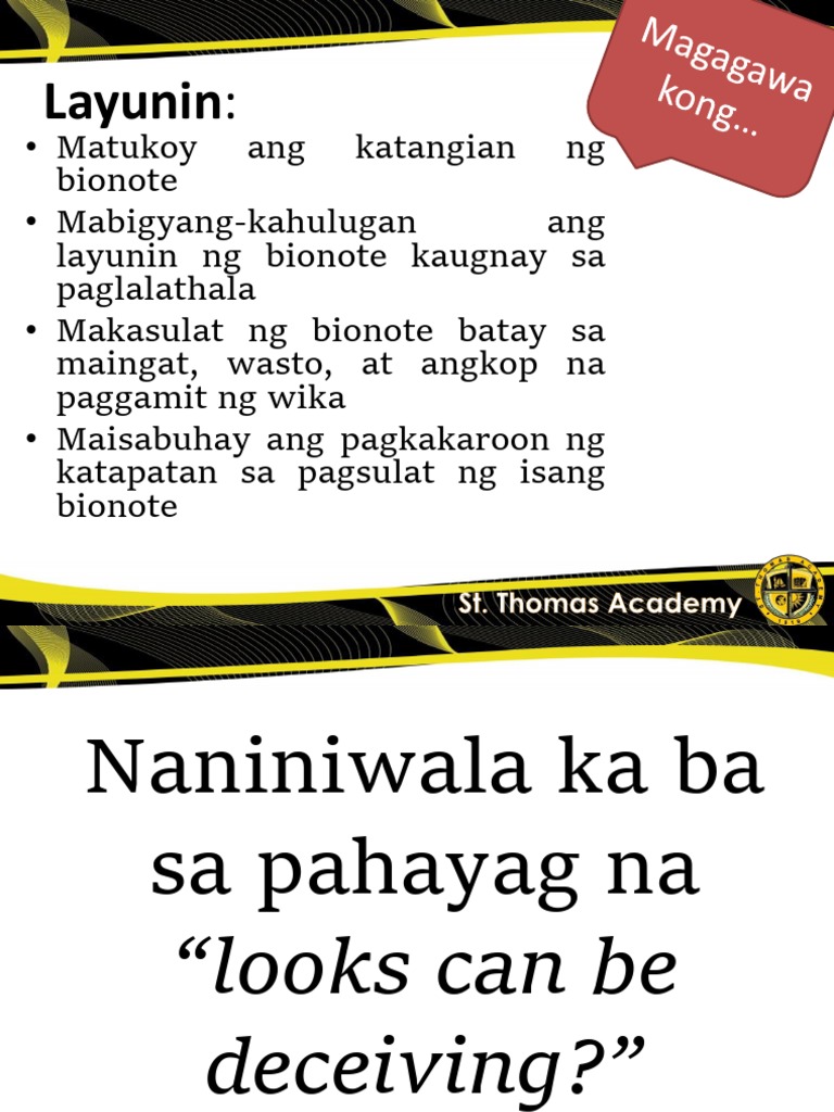 MGA KATANGIAN NG ISANG MAAYOS O AYOS NA BIONOTE.